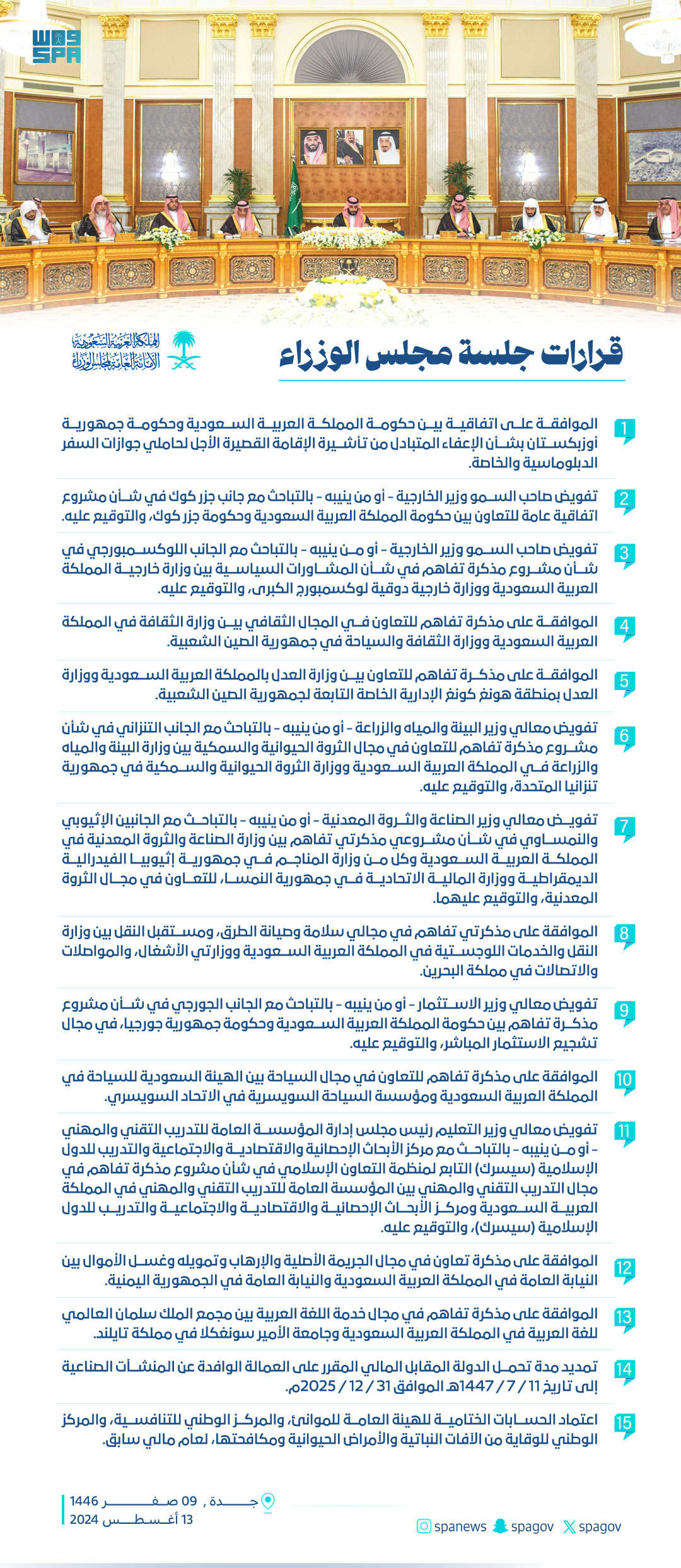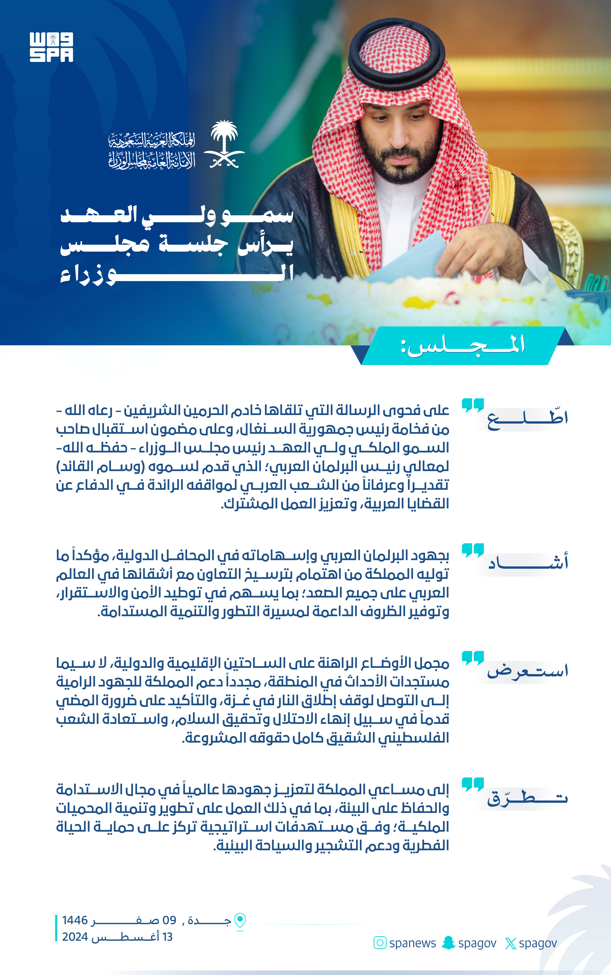 سمو ولي العهد يرأس جلسة مجلس الوزراء 13-8-2024