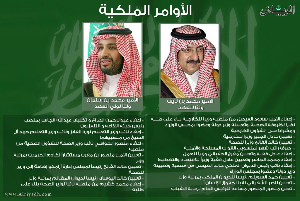 أوامر ملكية.. محمد بن نايف ولياً للعهد ومحمد بن سلمان ولياً لولي العهد